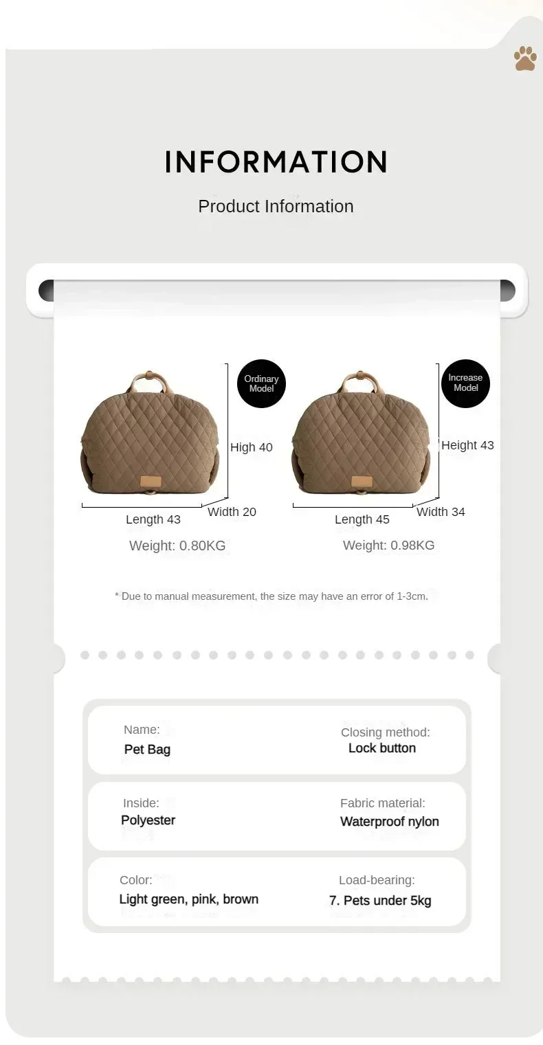 - Ultimate Travel Solution for Pet Lovers: Ideal for everyday errands and long journeys, this dog carrying bag transitions seamlessly from a small dog carrier to a medium dog carrier.